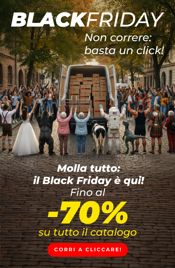 *L'offerta è valida fino alle ore 23:59 del 28/11/2025 su tutto il catalogo con sconti variabili fino al -70%, scegliendo la data di consegna più lontana. Limite di 3 lavorazioni per cliente per ogni categoria in promozione. L'importo massimo di ciascuna lavorazione è pari a 500,00 €. Le categorie in promozione non si riferiscono necessariamente alle categorie merceologiche presenti sul sito. Qualora siano attive più promozioni sullo stesso prodotto, il sistema applicherà automaticamente quella con la percentuale di sconto maggiore disponibile per il cliente. Lo sconto non è cumulabile con altri codici promozionali, offerte o sconti, e non può essere applicato a merce precedentemente acquistata o su ordini annullati.
