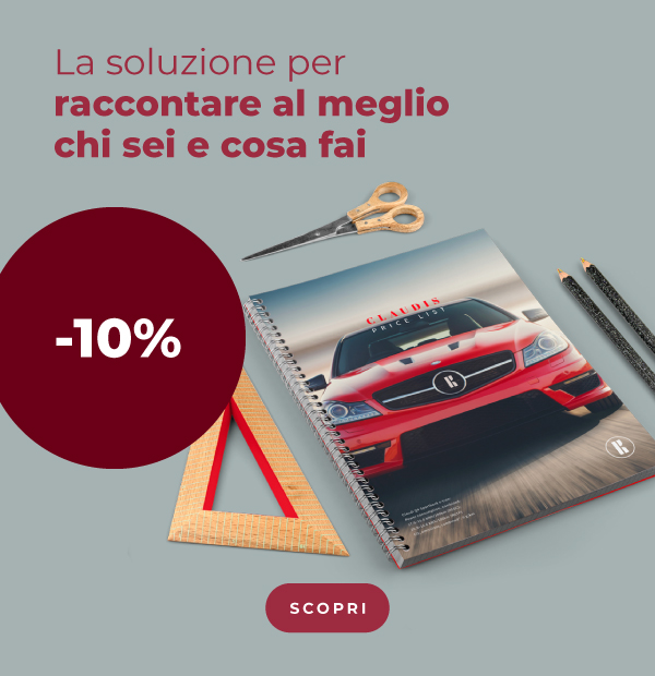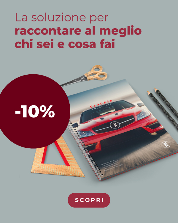 *Offerta valida su: Riviste, libri e cataloghi, dalle 8:00 del 25/3/2026 alle 23:59 del 29/3/2026. Limite di lavorazioni per cliente: 5. Offerta valida sulla data di consegna più lontana. Le spese di spedizione non sono gratuite per i prodotti Brossura cucita filo refe, schede non rilegate. Qualora siano attive più promozioni sullo stesso prodotto, il sistema applicherà automaticamente quella con la percentuale di sconto maggiore disponibile per il cliente. Lo sconto non è cumulabile con altri codici promozionali, offerte o sconti, e non può essere applicato a merce precedentemente acquistata o su ordini annullati. | |