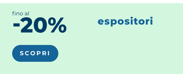 Offerta valida su: Espositori, dalle 8:00 del 23/3/2026 alle 23:59 del 29/3/2026. L'importo massimo per ciascuna lavorazione è pari a 500,00 €. Limite di lavorazioni per cliente: 5. Offerta valida sulla data di consegna più lontana. Qualora siano attive più promozioni sullo stesso prodotto, il sistema applicherà automaticamente quella con la percentuale di sconto maggiore disponibile per il cliente. Lo sconto non è cumulabile con altri codici promozionali, offerte o sconti, e non può essere applicato a merce precedentemente acquistata o su ordini annullati.
