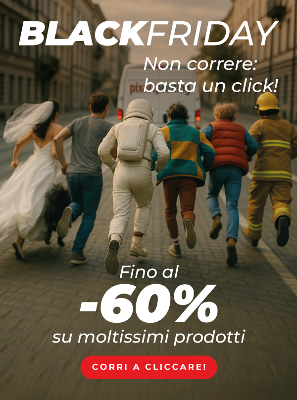 *L'offerta è valida dalle ore 08:00 del 24/11/2025 alle ore 23:59 del 27/11/2025 su una serie di prodotti del catalogo con sconti variabili fino al -60%, scegliendo la data di consegna più lontana. Limite di 3 lavorazioni per cliente per ogni categoria in promozione. L'importo massimo di ciascuna lavorazione è pari a 500,00 €. Le categorie in promozione non si riferiscono necessariamente alle categorie merceologiche presenti sul sito. Qualora siano attive più promozioni sullo stesso prodotto, il sistema applicherà automaticamente quella con la percentuale di sconto maggiore disponibile per il cliente. Lo sconto non è cumulabile con altri codici promozionali, offerte o sconti, e non può essere applicato a merce precedentemente acquistata o su ordini annullati. | |