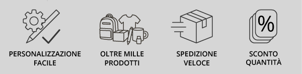 *Offerta valida su: Gadget personalizzati, dalle 8:00 del 2/2/2026 alle 23:59 dell’1/3/2026. Limite di lavorazioni per cliente: 5. Offerta valida sulla data di consegna più lontana. Qualora siano attive più promozioni sullo stesso prodotto, il sistema applicherà automaticamente quella con la percentuale di sconto maggiore disponibile per il cliente. Lo sconto non è cumulabile con altri codici promozionali, offerte o sconti, e non può essere applicato a merce precedentemente acquistata o su ordini annullati. |