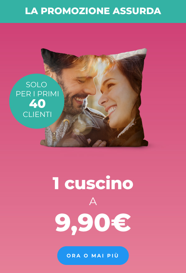 *Offerta valida per 40 lavorazioni complessive di 1 cuscino 40X40, scegliendo la data di consegna più lontana. Prezzo IVA esclusa. Limite di una lavorazione per cliente. Lo sconto non è cumulabile con altri codici promozionali, offerte o sconti, e non può essere applicato a merce precedentemente acquistata o su ordini annullati. |