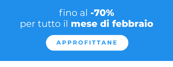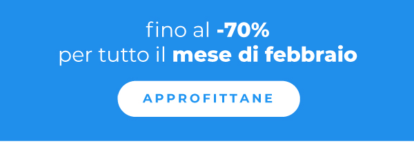 *Offerta valida su: Gadget personalizzati, dalle 8:00 del 2/2/2026 alle 23:59 del 28/2/2026. Limite di lavorazioni per cliente: 5. Offerta valida sulla data di consegna più lontana. Qualora siano attive più promozioni sullo stesso prodotto, il sistema applicherà automaticamente quella con la percentuale di sconto maggiore disponibile per il cliente. Lo sconto non è cumulabile con altri codici promozionali, offerte o sconti, e non può essere applicato a merce precedentemente acquistata o su ordini annullati. |