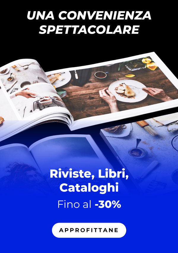 *L'offerta è valida fino alle ore 23:59 del 25/1/2026 su una serie di prodotti del catalogo con sconti variabili fino al -40%, scegliendo la data di consegna più lontana. Limite di 3 lavorazioni per cliente per ogni categoria in promozione. L'importo massimo di ciascuna lavorazione è pari a 500,00 €. Le spese di spedizione non sono gratuite per i prodotti Brossura cucita filo refe, schede non rilegate, brossura grecata per alte tirature. Le categorie in promozione non si riferiscono necessariamente alle categorie merceologiche presenti sul sito. Qualora siano attive più promozioni sullo stesso prodotto, il sistema applicherà automaticamente quella con la percentuale di sconto maggiore disponibile per il cliente. Lo sconto non è cumulabile con altri codici promozionali, offerte o sconti, e non può essere applicato a merce precedentemente acquistata o su ordini annullati. | |
