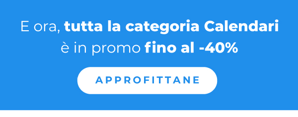 *L'offerta è valida dalle ore 08:00 del 15/12/2025 alle ore 23:59 del 21/12/2025 su una serie di prodotti del catalogo con sconti variabili fino al -40%, scegliendo la data di consegna più lontana. Limite di 3 lavorazioni per cliente per ogni categoria in promozione. L'importo massimo di ciascuna lavorazione è pari a 500,00 €. Le categorie in promozione non si riferiscono necessariamente alle categorie merceologiche presenti sul sito. Qualora siano attive più promozioni sullo stesso prodotto, il sistema applicherà automaticamente quella con la percentuale di sconto maggiore disponibile per il cliente. Lo sconto non è cumulabile con altri codici promozionali, offerte o sconti, e non può essere applicato a merce precedentemente acquistata o su ordini annullati. |