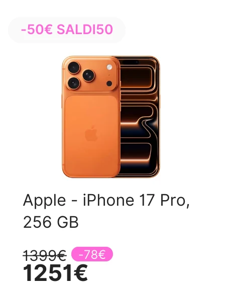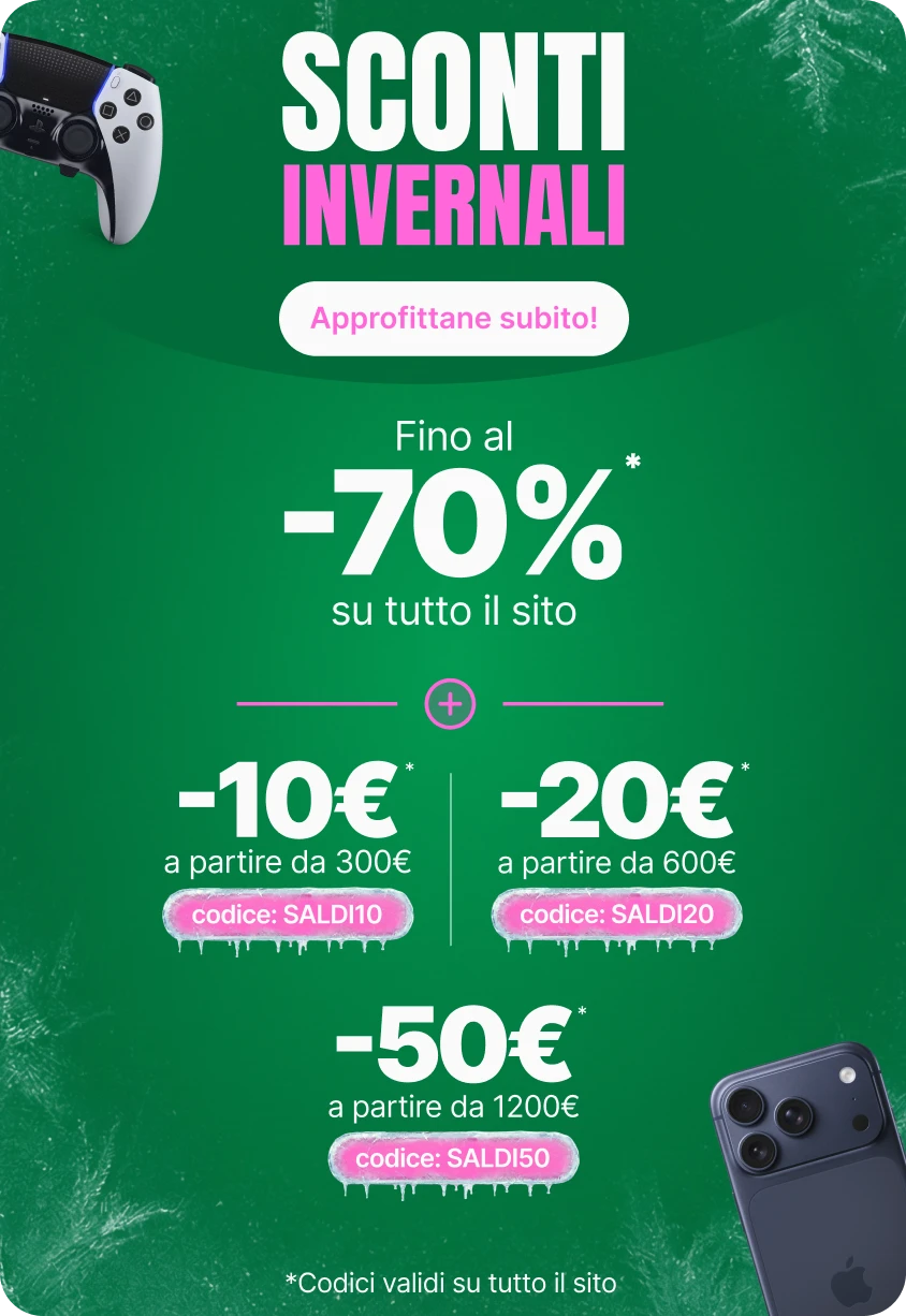 *-20€ di sconto immediato su una selezione di prodotti per acquisti a partire da 600€ con il codice: SALDI20 *-50€ di sconto immediato su una selezione di prodotti per acquisti a partire da 1200€ con il codice: SALDI50
