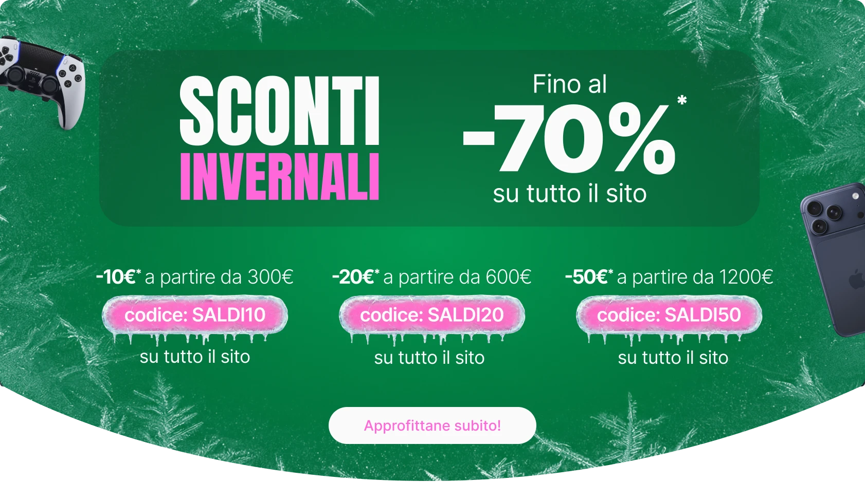 *Fino al 70% di sconto, solo su una selezione di prodotti. *-10€ di sconto immediato su una selezione di prodotti per acquisti a partire da 300€ con il codice: SALDI10