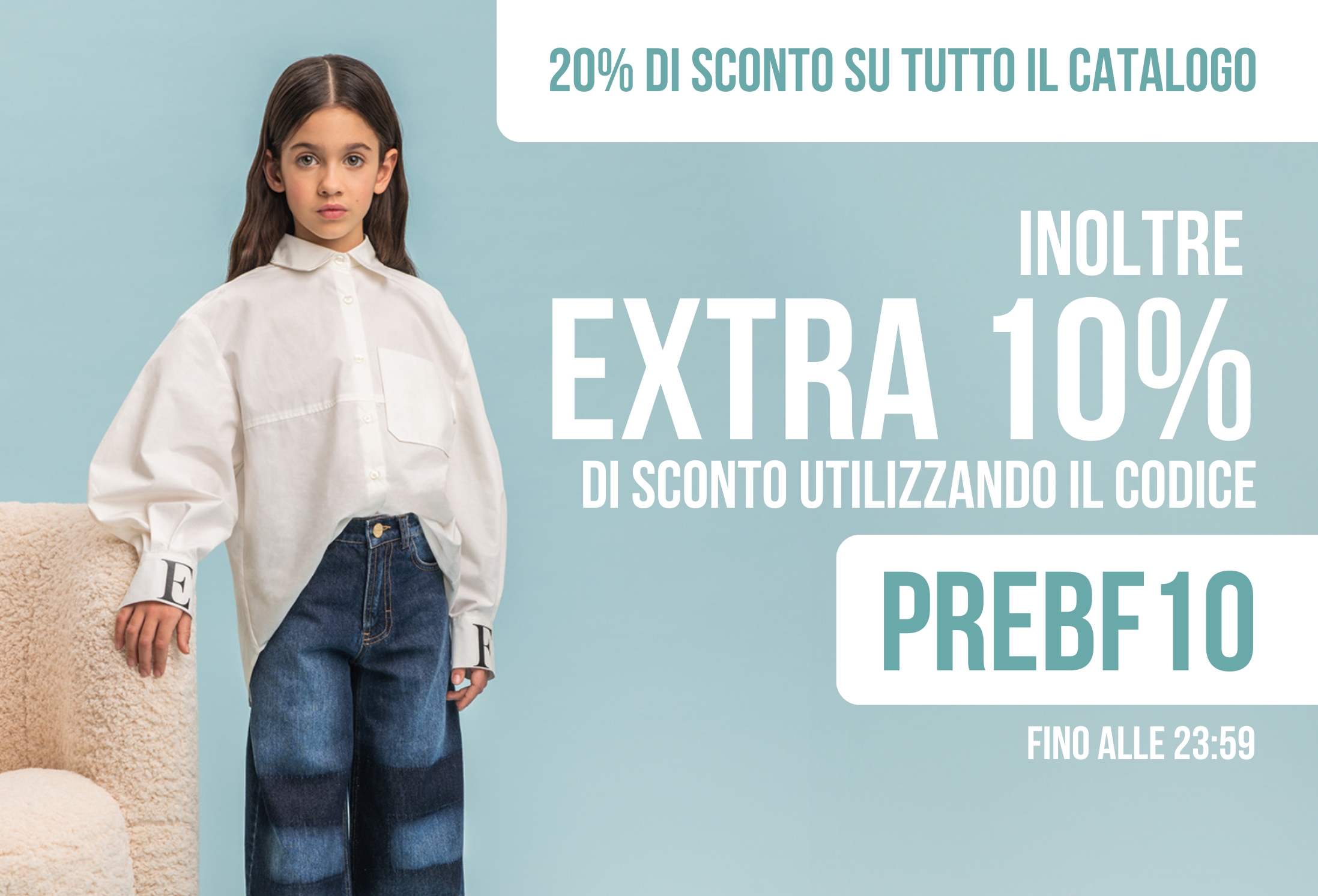 Il tuo accesso esclusivo al -10% extra, oltre al -20% applicato a tutto ilcatalogo, sta per terminare: PREBF10 vale ancora oggi, in anteprima, su tutti i prodotti Florence Kids.