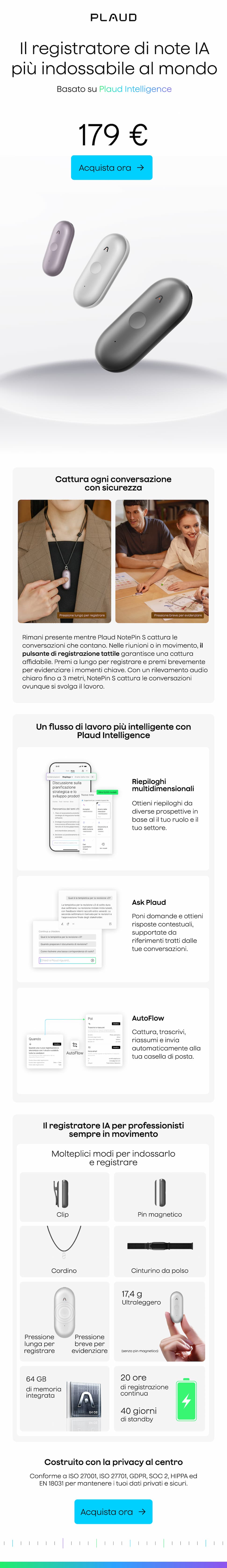 Prima di prendere appunti, è necessario ottenere il consenso esplicito di tutte le persone la cui voce viene inclusa. Gli utenti sono tenuti a garantire il rispetto della riservatezza e ad attenersi alle leggi e regolamenti locali.