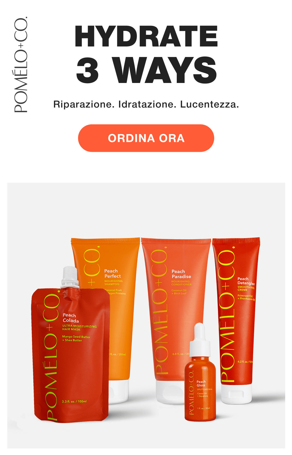La nostra linea Hydrating Peach è la risposta a lunghezze secche, capelli spenti e doppie punte – perfettamente pensata per le esigenze della tua routine quotidiana.