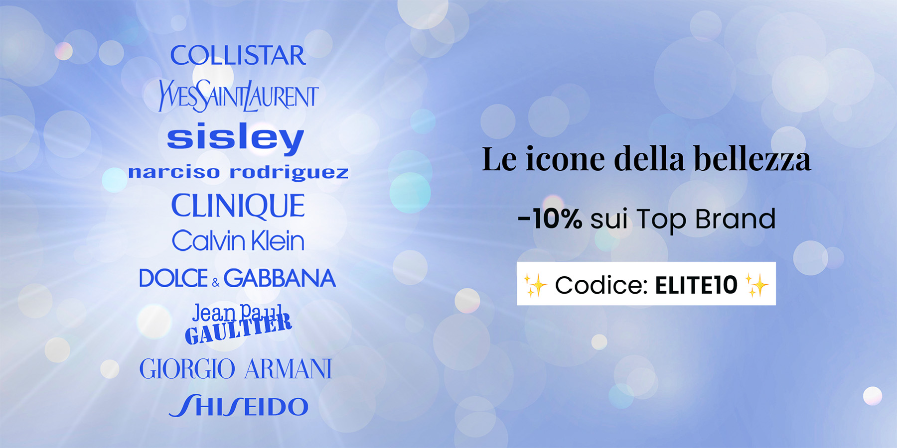 Usa il codice ELITE10 per ottenere lo sconto sulle icone della bellezza...