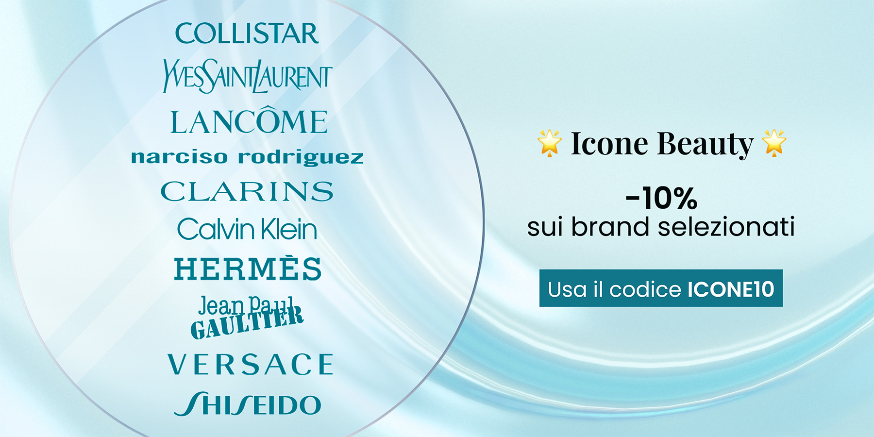 e avrai il 10% di sconto su tutti i prodotti dei marchi: Shiseido, Yves Saint Laurent, Jean Paul Gaultier, Narciso Rodriguez, Collistar, Calvin Klein, Hermès, Versace, Lancôme e Clarins. |