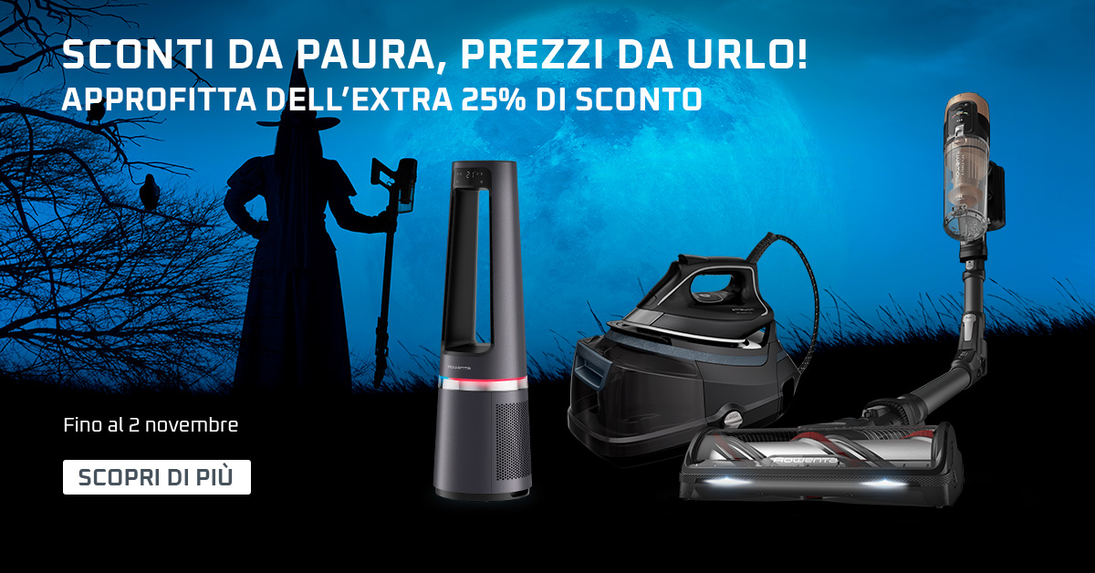 1 Il codice dà diritto ad un extra sconto del 25% + spedizione gratuita per ordini effettuati su Rowenta.it dal 28/10/2025 al 02/11/2025, applicabile esclusivamente su prodotti selezionati pubblicati nella pagina "". Sconto valido inserendo a carrello il codice ZUCCA25. Non cumulabile ad altri codici sconto e non applicabile sui Pack. Prezzi, assortimento e disponibilità dei prodotti sono soggetti a variazioni. |