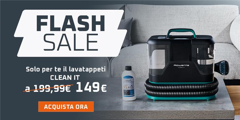1 Prezzo speciale di 149€ su Clean It, Lavatappeti, (Ref: IN5020), valido su Rowenta.it fino al 19/10/2025, applicabile inserendo a carrello il codice FLASH4025R. Non cumulabile ad altri codici sconto né al prezzo promozionale. Prezzi e disponibilità dei prodotti sono soggetti a variazioni.