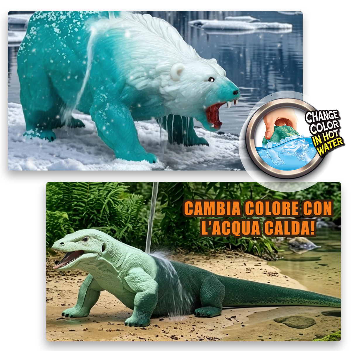 Entra nel misterioso mondo dei ghiacci, dove potrai scoprire la elegante Lince, stringere e allungare l’Orca assassina, osservare il veloce Lupo in agguato e vedere l’imponente Orso trasformarsi e cambiare colore a contatto con l’acqua.