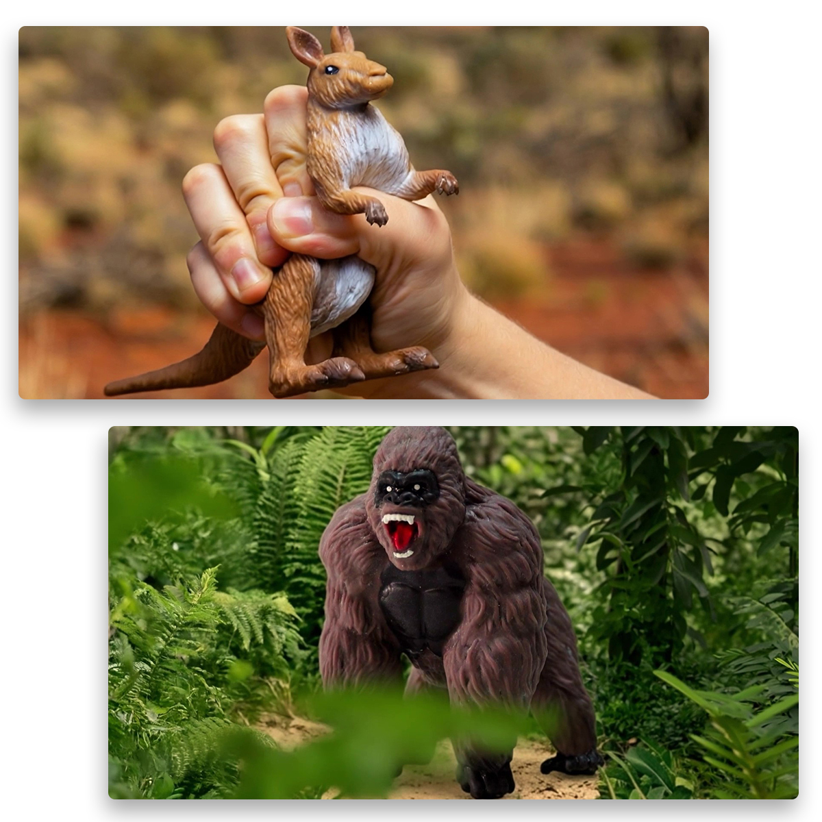 Nel regno del fuoco ti aspettano animali sorprendenti: muoviti nell’ombra e incontra il Gorilla e il morbido Canguro da stretchare. Fai attenzione al leggendario Drago di Komodo, che cambia colore con un incredibile effetto speciale, e affronta il fiero Leone, pronto alla sfida. Ma il viaggio non finisce qui…