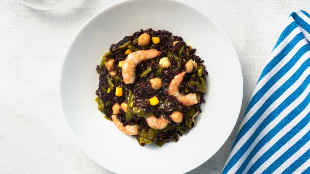 1. Riso Venere con Gamberi e LegumiUna versione chic e invernale dell’insalata di riso con ceci, fagioli, gamberi e mais: ricchissimi di proteine! Prova un piatto unico ottimo anche da portare con te per un pranzo all'aperto o in ufficio.