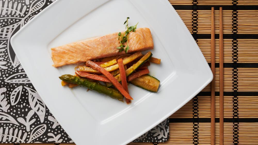 5. Salmone con verdurine e zenzero Il salmone è già uno dei tuoi pesci preferiti? Se lo provi con queste verdure dalla marinatura speziata e gustosa poi, te ne innamorerai! Un fumetto di pesce delizioso e intenso fa da legame anche al contorno ti regalano un secondo dal profumo d’Oriente.