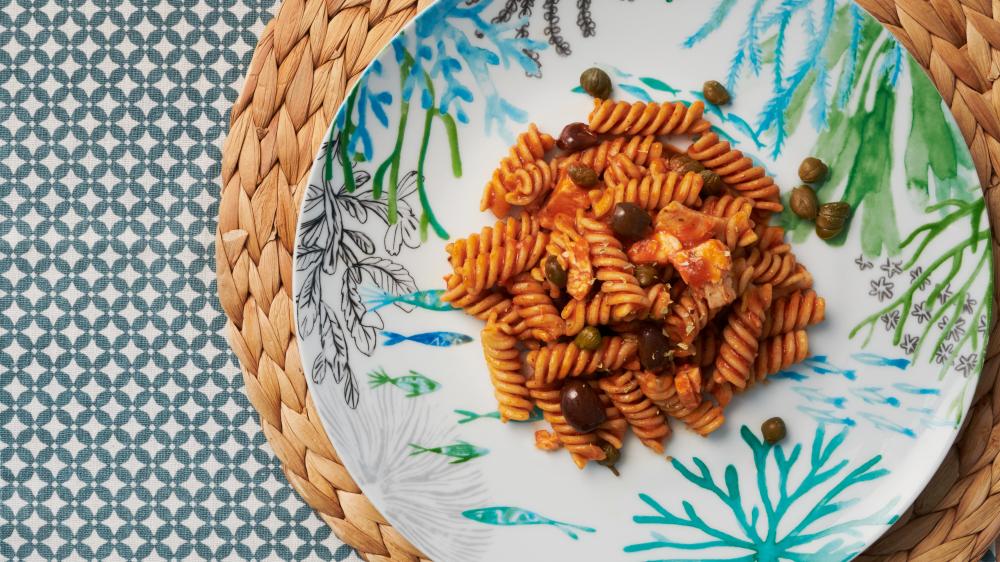 3. Pasta integrale con pesce spada La pasta integrale ha più fibre, vitamine, proteine e sali minerali della pasta di semola tradizionale. Inizia un viaggio di gusto nel Mediterraneo con i nostri fusilli con spada, olive e capperi.