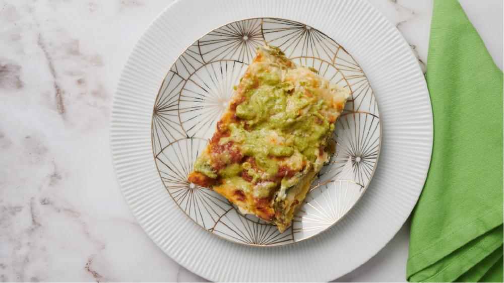 Una lasagna vegetariana che ti porta sulla Riviera Ligure: una sfoglia ricca di sfumature con una golosa besciamella arricchita dal pesto tradizionale alla genovese, poi fagiolini, patate e zucchine. Ideale per chi cerca delle alternative senza carne, ma senza rinunciare al gusto.
