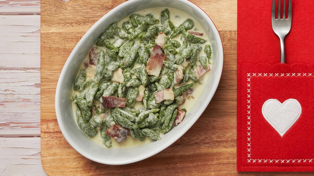 Anche per te Inverno fa rima con Montagna? E allora vieni con noi in Tirolo. Basterà un solo assaggio di questi deliziosi gnocchetti agli spinaci con panna e speck per trasportarti sulle cime delle Alpi.