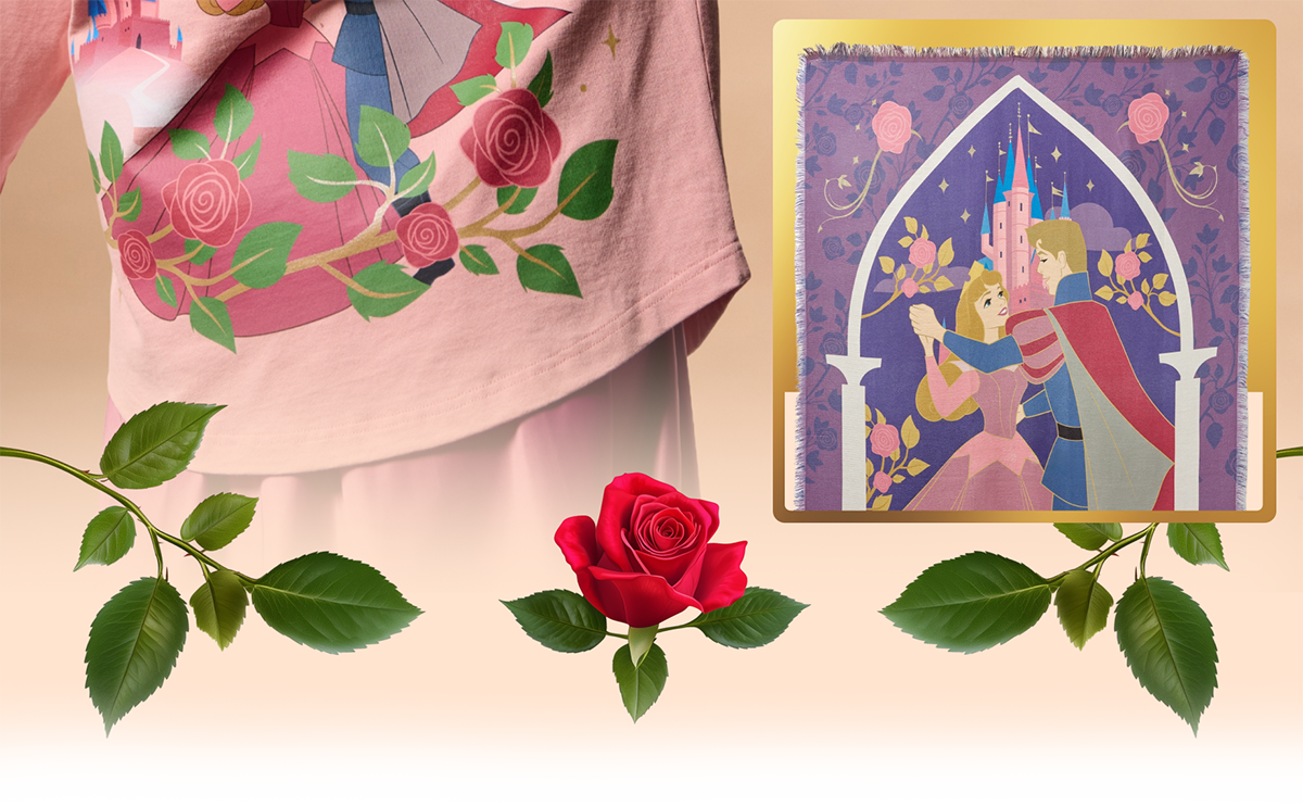 Abbigliamento e articoli per la casa ispirati a La Bella Addormentata nel bosco.