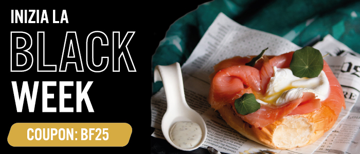 | Inizia ufficialmente la Black Week per te che sei un appassionato di Cibi Rari e Preziosi! Scopri la raffinatezza del caviale pregiato, l’eleganza dei finger food a base da salmone affumicato, le crocchette per l’aperitivo e preparati a stupire con la Wagyu giapponese. Usa subito il coupn BF25 per ottenere il 20% di sconto su tutto il catalogo: non farti scappare questa occasione! |