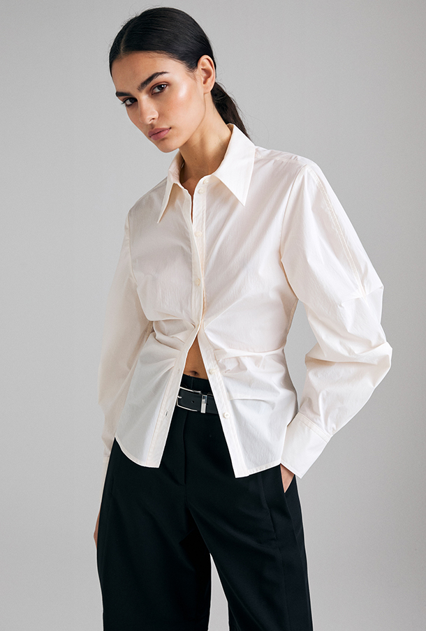 Un equilibrio di proporzioni e texture dà forma a un look dal mood urbano e contemporaneo, arricchito da una palette di tonalità neutre e sofisticate. |