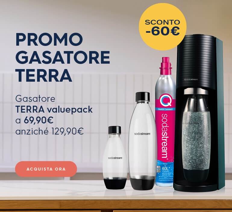 Approfitta delle promozioni sui pack dei gasatori: fino al 2 novembre trovi offerte speciali sui pack del gasatore TERRA con bottiglie e cilindri di scorta.
