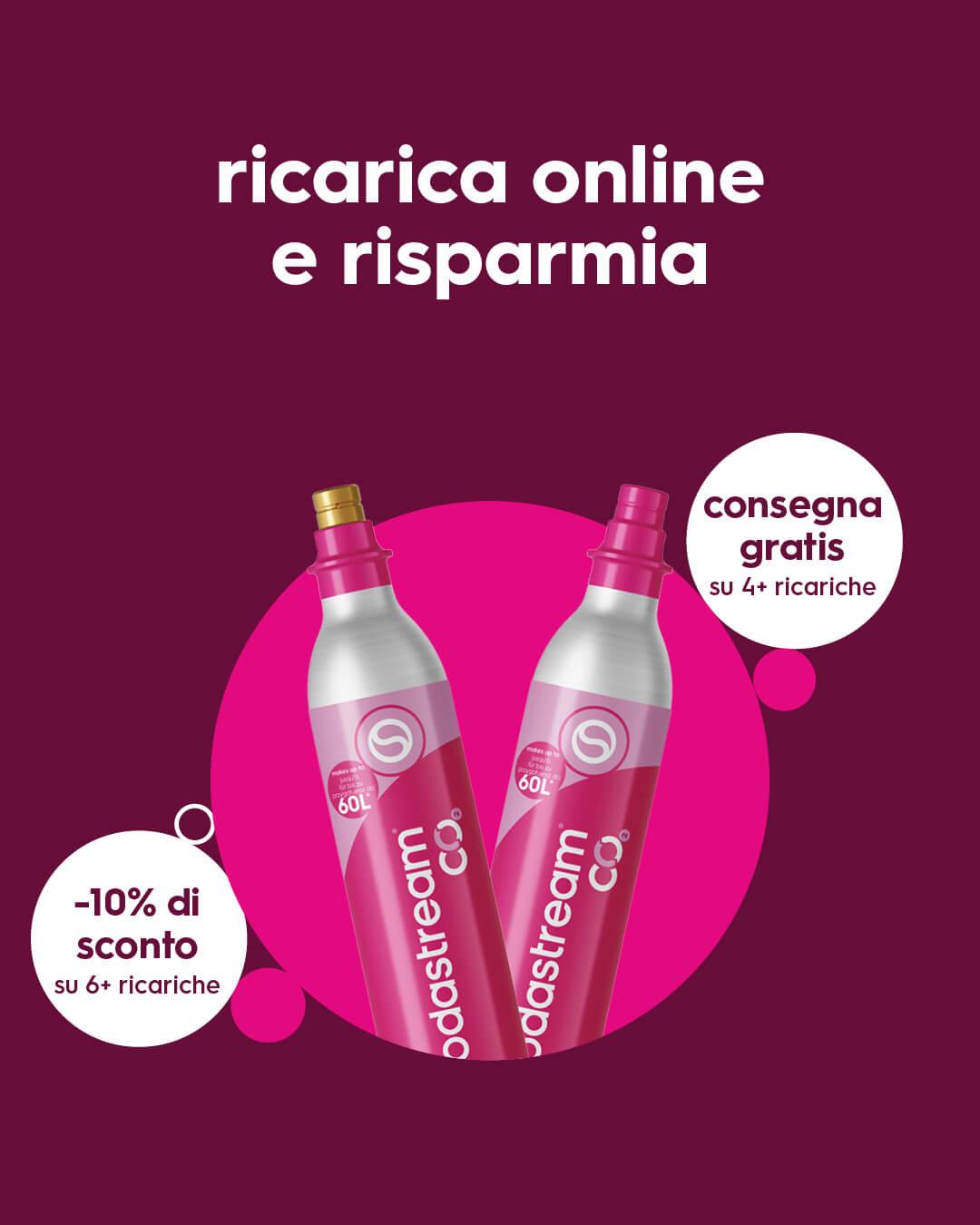Approfitta dell'offerta sullo scambio online delle ricariche Sodastream: se scambi 6 o più cilindri sul nostro sito, per te 10% di sconto immediato al checkout.