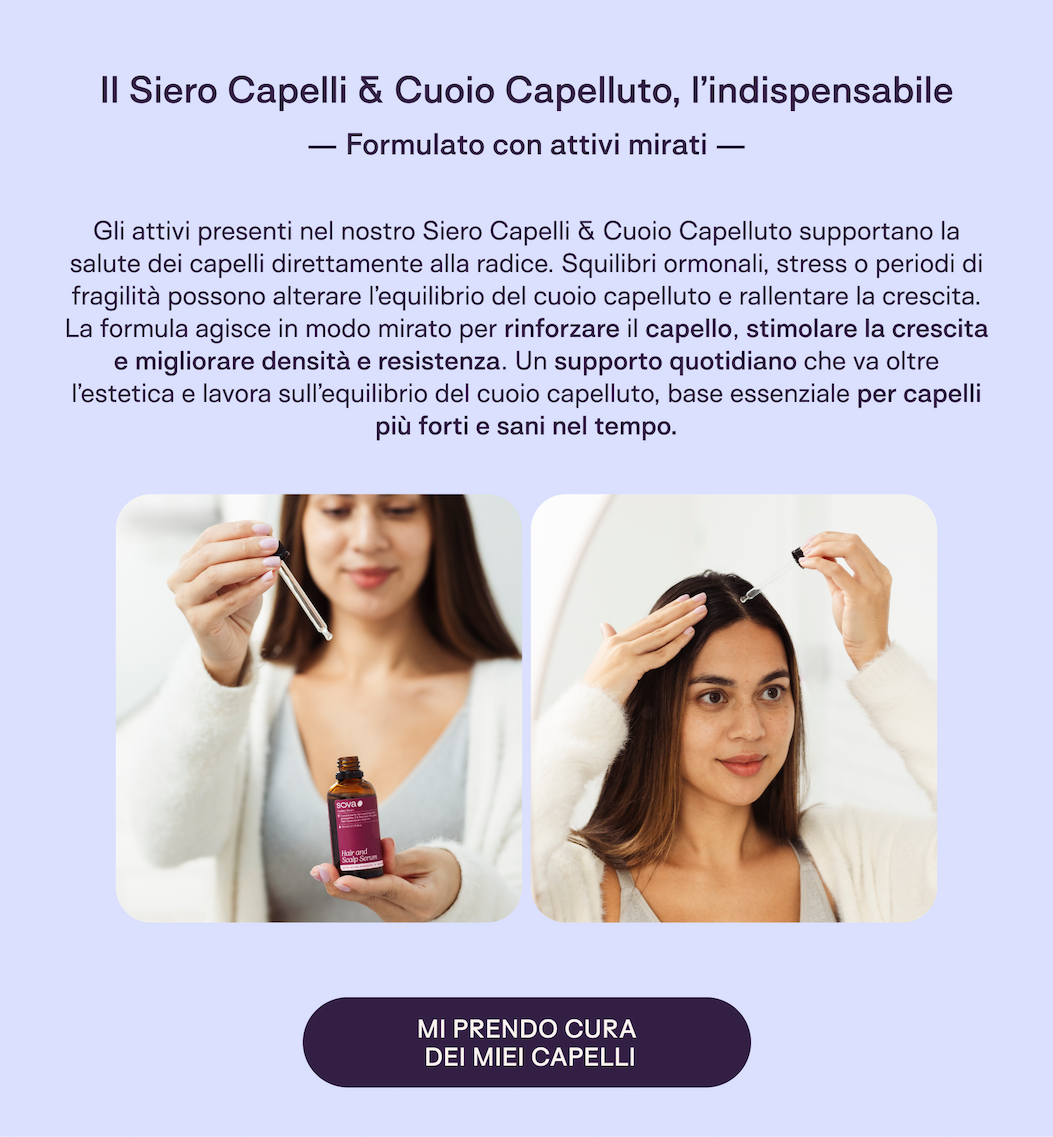 Il nostro Siero è ideale quando i capelli appaiono più sottili, spenti o indeboliti, o quando il cuoio capelluto ha bisogno di attenzioni mirate. Un gesto semplice che può diventare un alleato prezioso nella tua routine, per prenderti cura dei capelli con costanza, ascolto e delicatezza.
