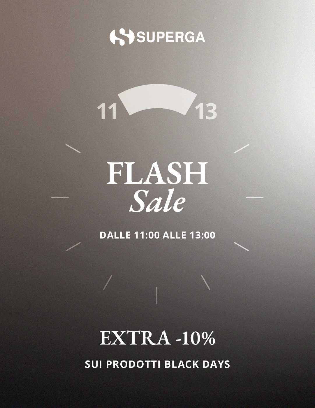 *Codice valido solo su Superga.com. Si applica al checkout esclusivamente sulla selezione dei prodotti Black Days il 18 novembre 2025, dalle ore 11.00 alle ore 13:00. Non cumulabile con altre promozioni/codici sconto. |