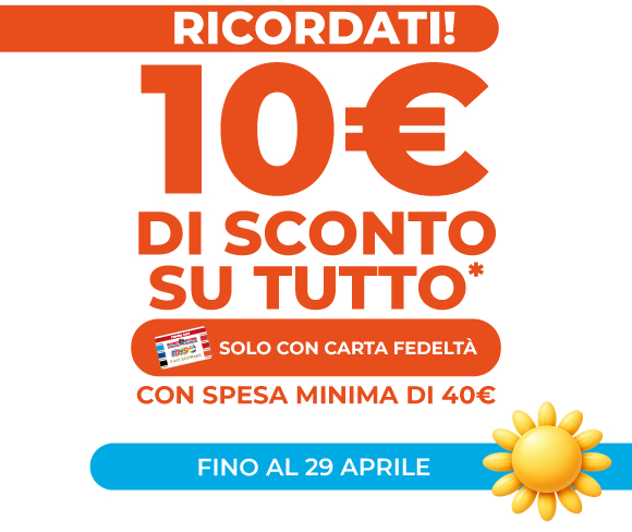 Un buono sconto da 10€ con una spesa minima di 50€.