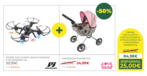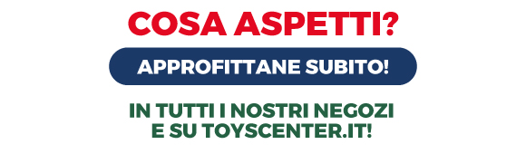*Acquistando 2 giocattoli, con scontrino o ordine unico, il meno caro lo paghi la metà. Sono esclusi dalla promozione i prodotti già scontati, gli articoli scuola, Pokémon Gamevision, Lorcana e altre esclusioni presenti nel regolamento disponibile al box informazioni del punto vendita e su toyscenter.it.