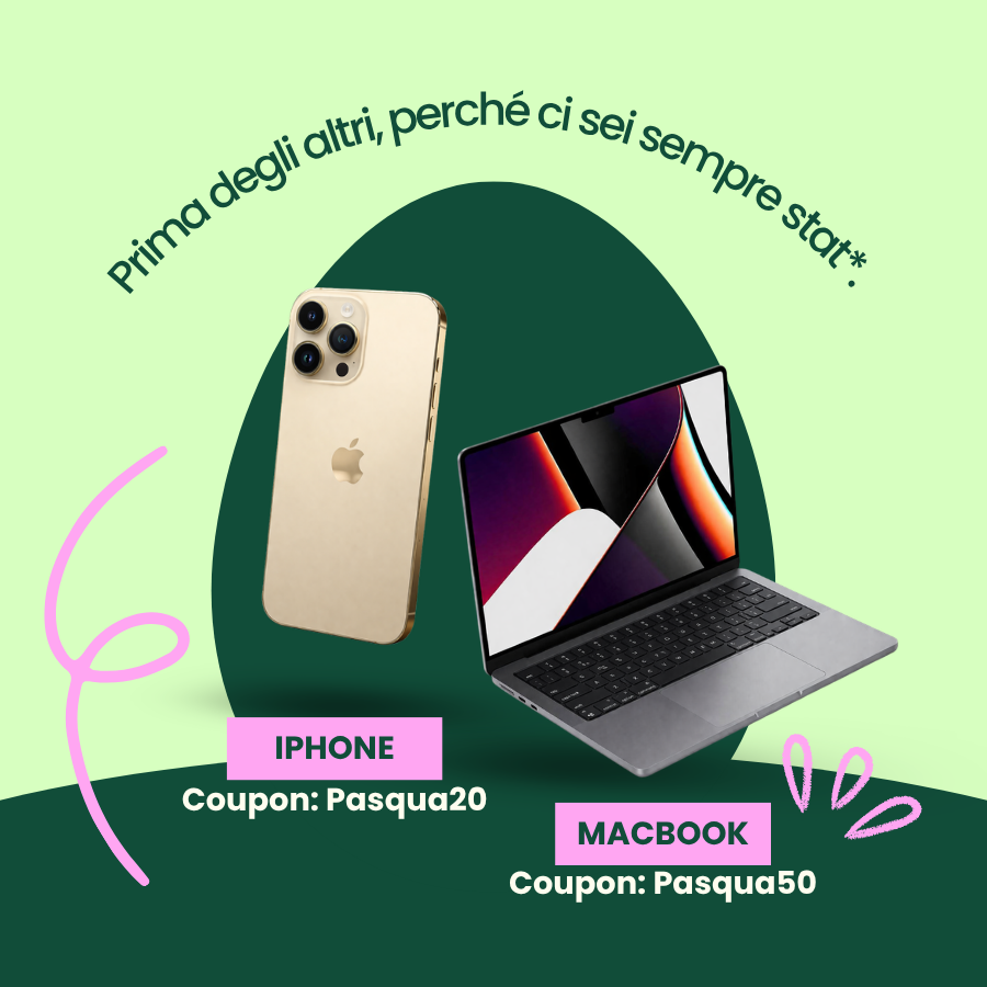 Coupon: PASQUA20 - €20 di sconto su tutti gli iPhone ricondizionatiCoupon: PASQUA50 - €50 di sconto su tutti i MacBook ricondizionati- 🚚 Spedizione gratuita su tutti gli ordini, senza soglia minima