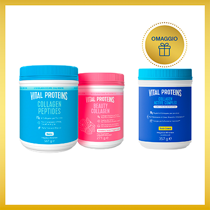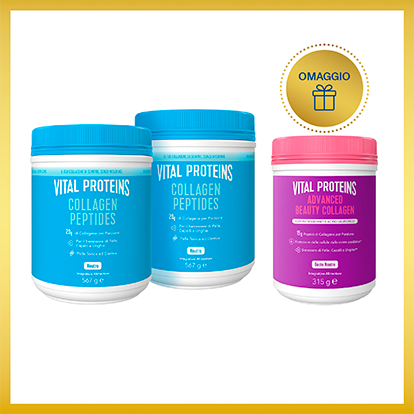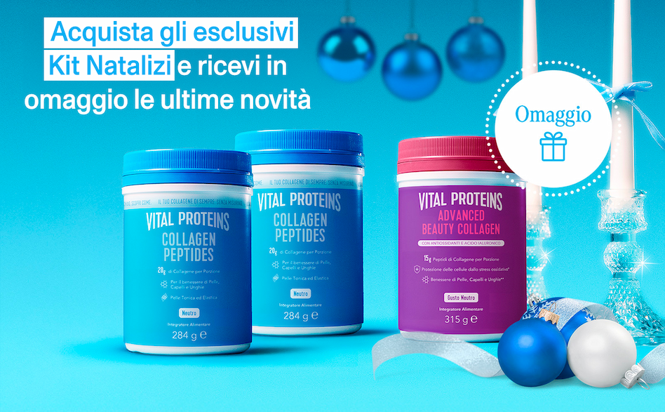 questo Natale regala, e regalati, benessere con i Kit Natalizi Vital Proteins: 3 prodotti, di cui uno in omaggio! In ogni kit troverai infatti uno dei nostri nuovi prodotti gratis: Advanced Beauty Collagen e Collagen Active Complex. Scegli tra otto varianti in edizione limitata. In più, per ogni ordine, ricevi anche l'originale Box Vital Proteins per conservare i tuoi kit in modo pratico*!