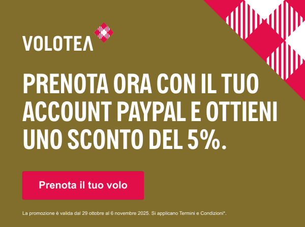 VOLOTEA: Sconto del 5% sul prezzo della tua prenotazione con PayPal