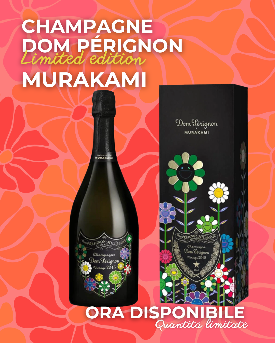 Murakami - sì, proprio l’artista dei celebri fiori sorridenti -reinterpreta l’etichetta con le sue inconfondibili icone pop, trasformando ogni bottiglia in un piccolo capolavoro da collezione.