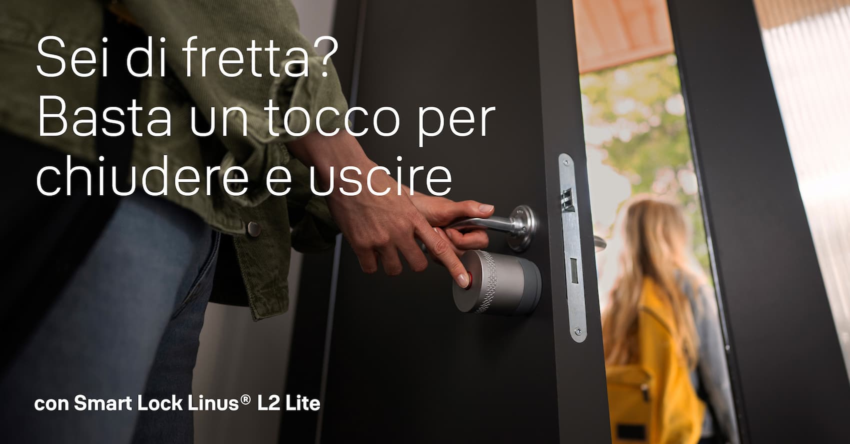 🔐 Da oggi basta un gesto Con lo Smart Lock Linus® L2 Lite, quel dubbio non rovina più la tua giornata. Uscendo di casa è sufficiente premere il tasto KeySense™ per bloccare la porta in modo semplice e immediato.