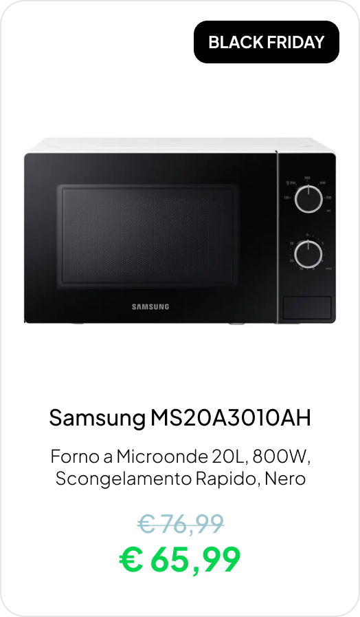 Le nostre offerte Black Friday sono attive, con sconti fino al 27% su queste categorie: Elettrodomestici, TV, IT, utensili fai-da-te, telefoni cellulari e molto altro.