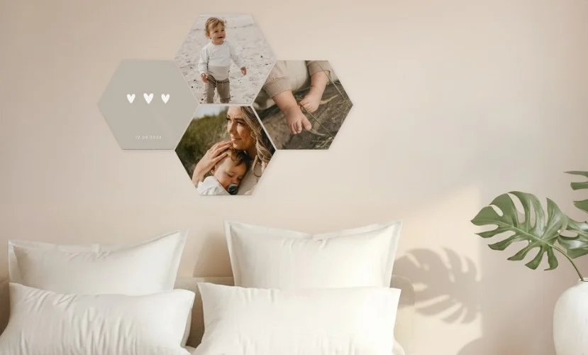 Appendi i tuoi ricordi al muro con le nostre piastrelle fotografiche in legno! E che bello, puoi alternare le piastrelle come preferisci. Se vuoi qualcosa di nuovo, puoi ordinare una singola piastrella e aggiungerla al tuo collage fotografico sulla parete. Le piastrelle possono essere ordinate in set da uno, due, quattro o otto e sono disponibili nelle forme esagonale, quadrata e rotonda. |