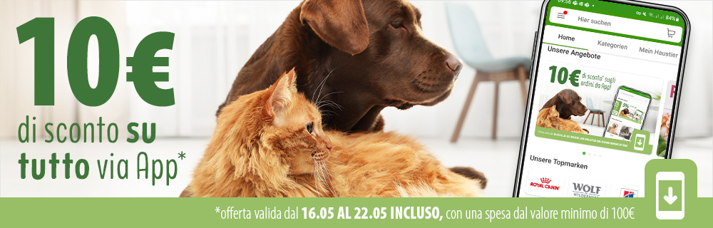 | | hai una settimana di tempo per risparmiare 10€ di SCONTO su TUTTO! * Lo sconto vale solo su app, anche sulle promozioni in corso e su antiparassitari e lettiere! Come utilizzare questo sconto sensazionale? ✔️Apri l'App zooplus ✔️Clicca su "Attiva lo sconto" ✔️Aggiungi al carrello i tuoi prodotti preferiti e vai alla cassa: lo sconto sarà già visibile nel carrello! |