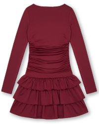 Abito rosso con ruches e silhouette fit & flare.